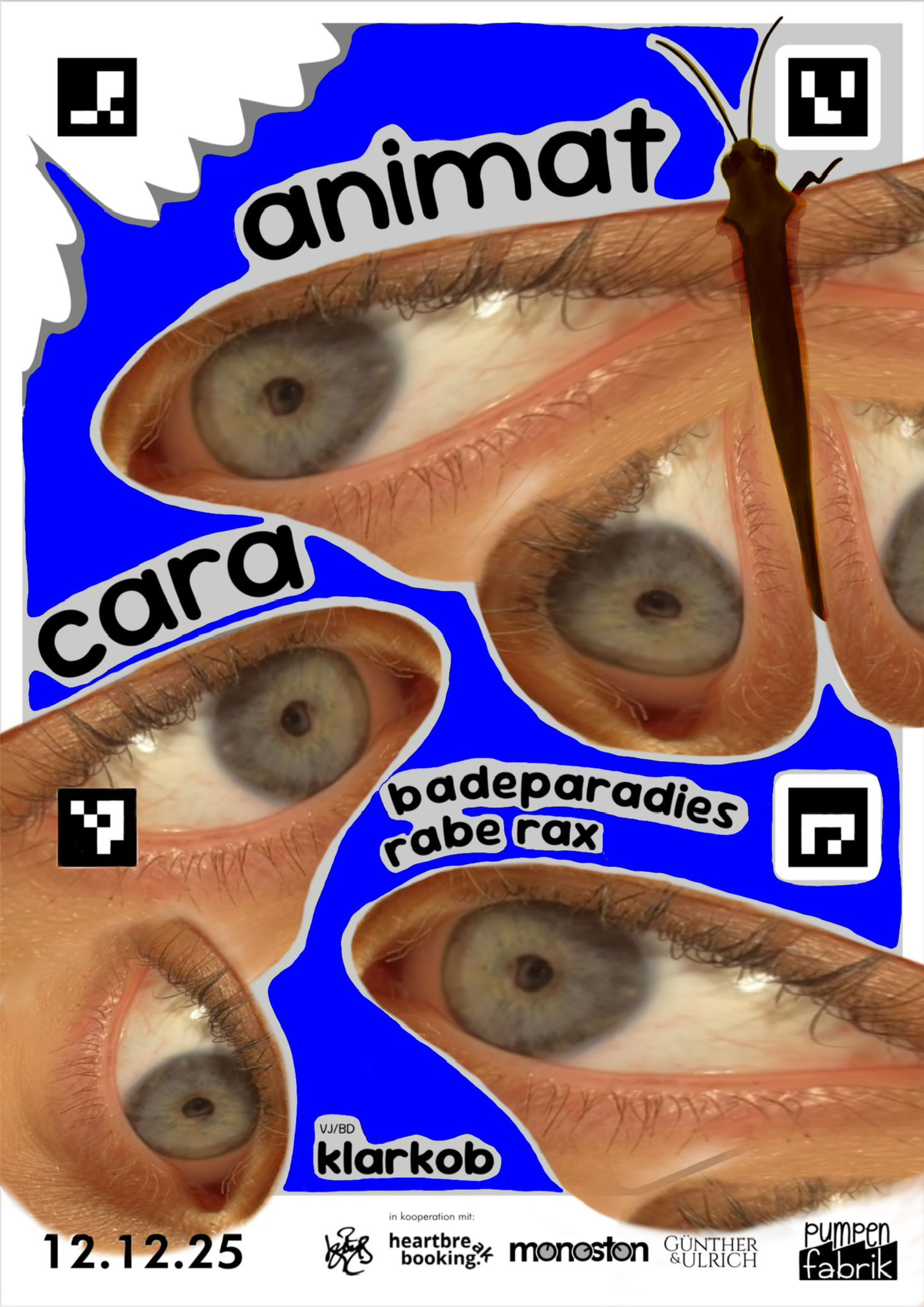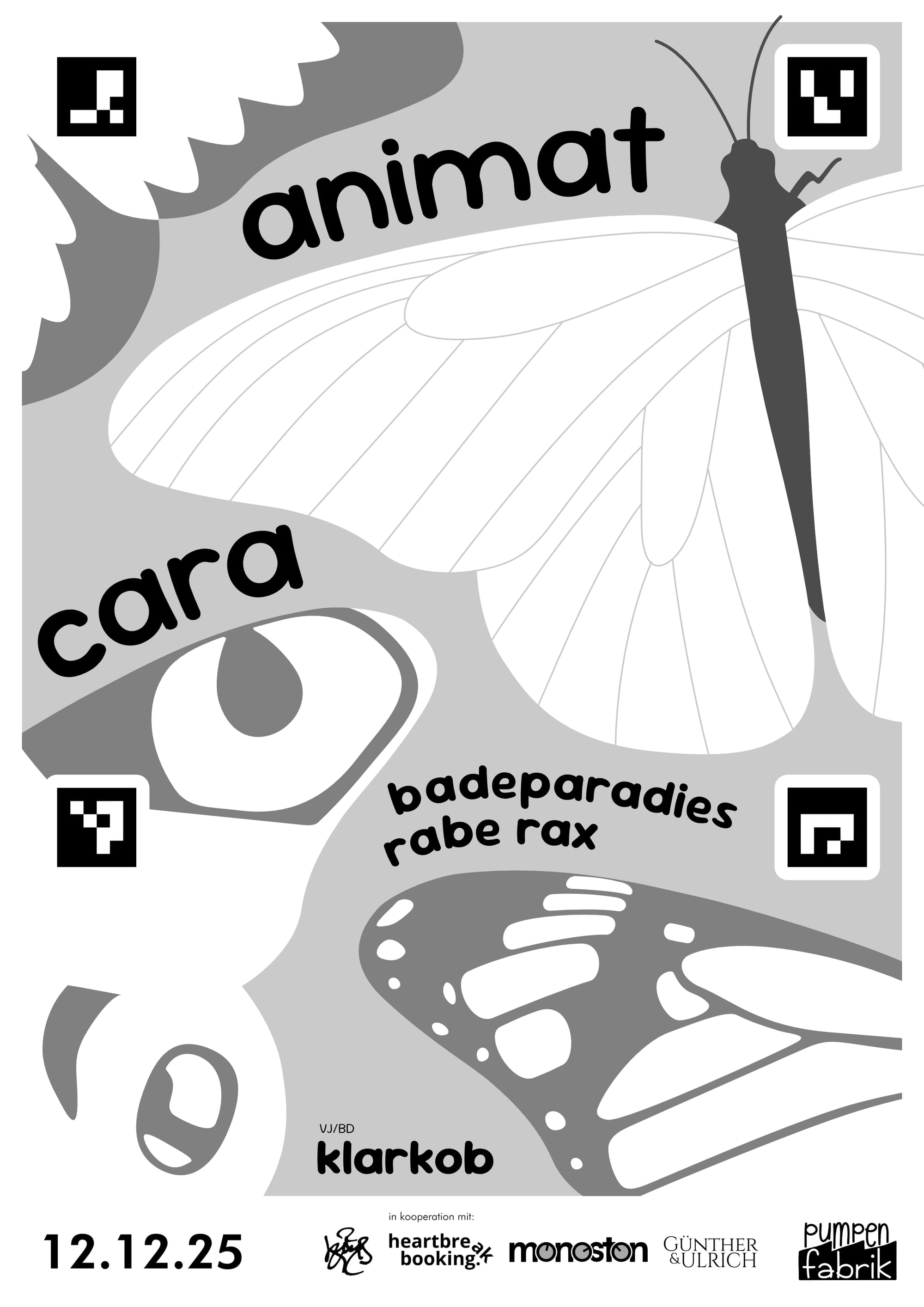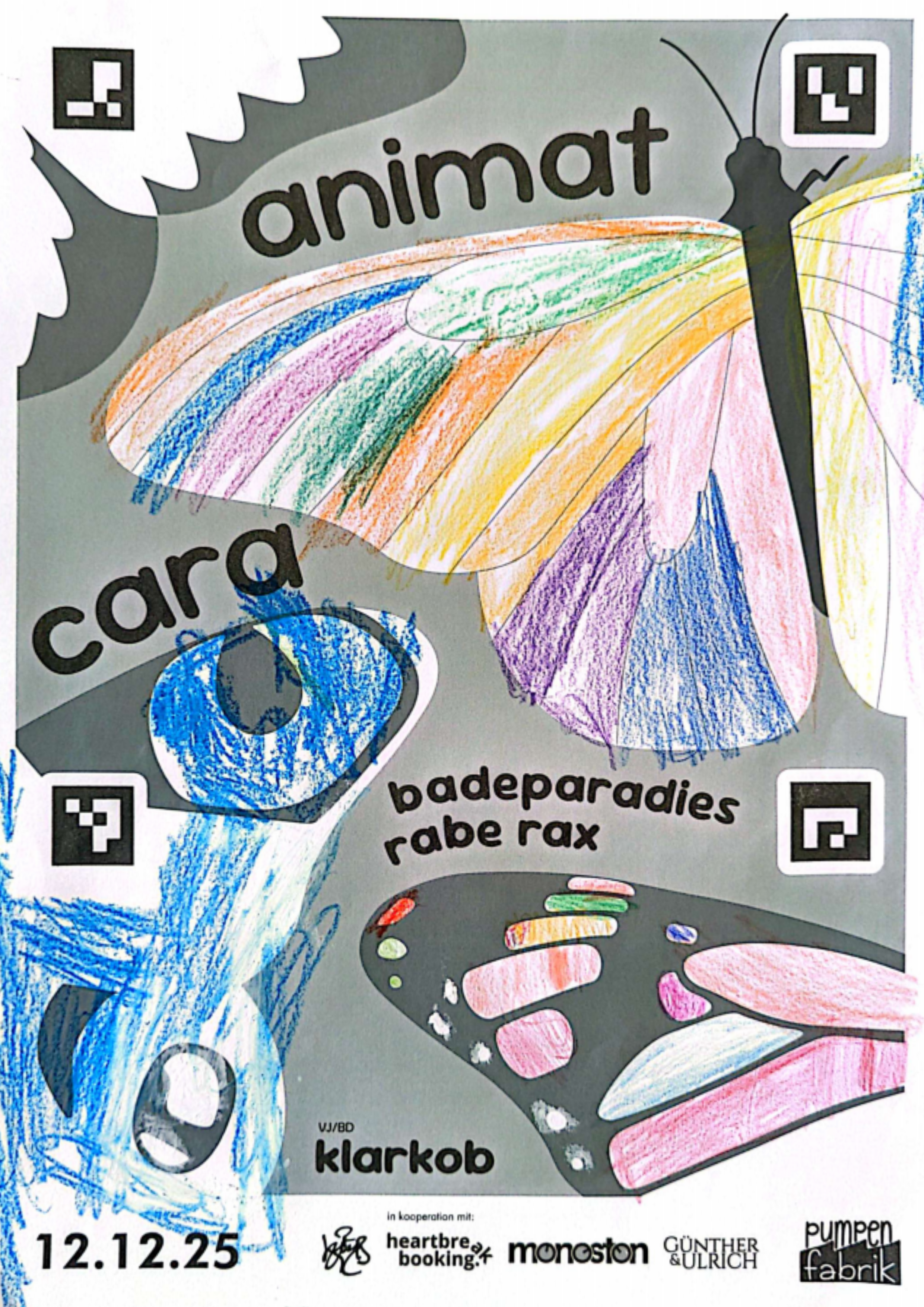 I wanted the invite to the concert to be special and include a poster for the event. I ended up with a design that was incomplete. It was incomplete, because everybody who was invited was tasked with coloring it in themselves, much like a coloring book. And the best part is: The wing of the butterfly prominent on the top right, is the exact shape as the wings of the butterflies that i was building. And I added four ArUco markers around the wing to make it easier for me to automate the tracking and perspective correction of the wing.